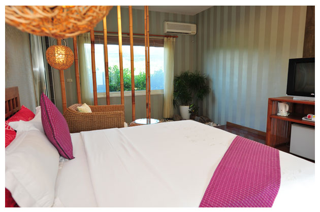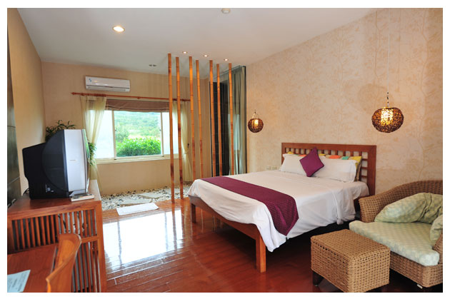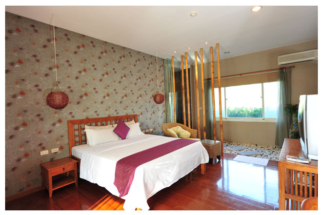 雙人車屋:外觀採日式建築風,房內採峇里島風設計,讓您有不同風格的感受,佈置高雅精緻,乾溼分離多功能衛浴,中控式燈光、空調、電視等...